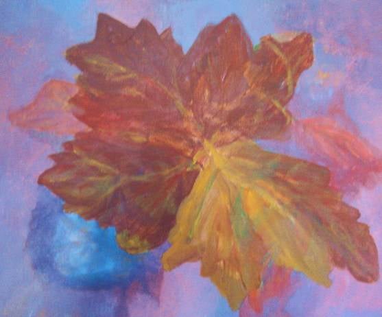 Boven: doekje, titel: Herstblad, 2014