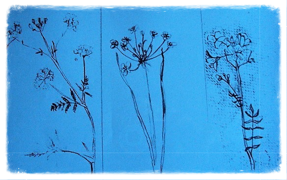 links in blauw : weidebloemen
