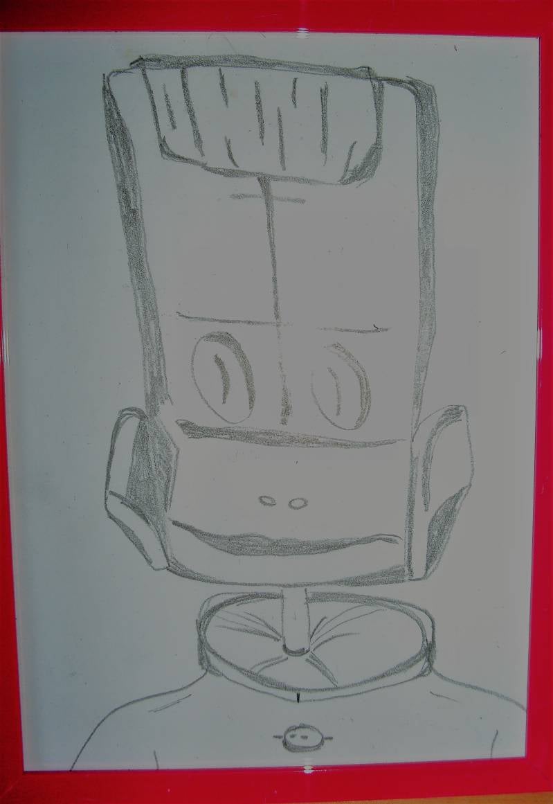 Onderstaande tekeningen zitten achter glas en gingen mee op toernee tijdens