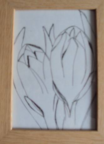 Boven: tekening ingelijst: piipkruud Boven tekening ingelijst: zwanenbloem