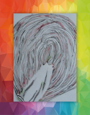 De volgende afbeeldingen zijn eerst getekend, daarna geverfd met Acryl en vervolgens bij gekleurd met pastelpotloden