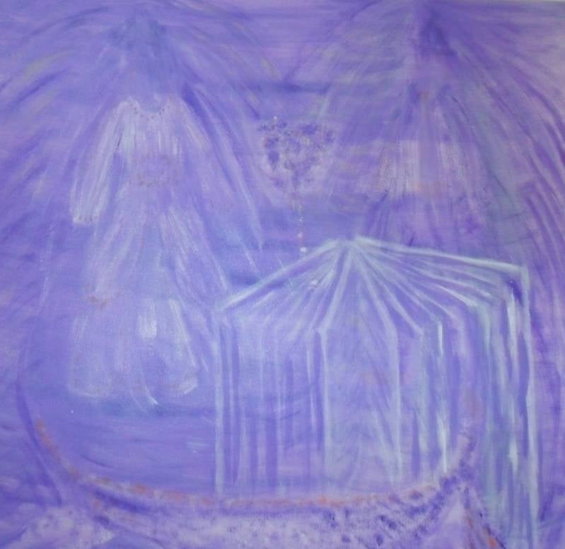 Onder: blokpaneeltje van 20 cm bij 18 cm is in dezelfde sfeer geschilderd. De titel; met hart en ziel. Het maakt deel uit van